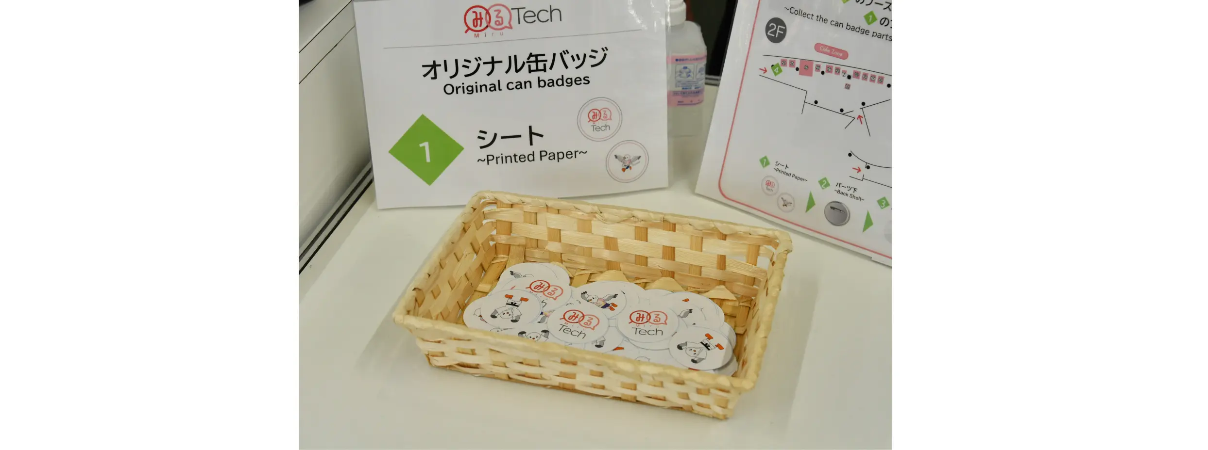 会場内のパーツを集め、「みるTech」オリジナル缶バッジを作れる企画も実施中。是非ご参加ください!